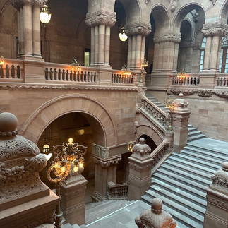 The gathering opened with a choice of tours; one of Albany Nanotech Complex, and the one that I chose of the New York State Capitol, which provided a reminder of the group’s connection (feminism in New York State) that acted as a great conversation topic, allowing me to integrate myself into the new group of women seamlessly. The tour guide explained the history of the building, such as the Million Dollar Staircase, which has recently been updated to honor the great Ruth Bader Ginsburg by including her bust as one of the seven female faces on the staircase. After the tour, we signed into the hotel before a reception with the Mayor of Albany, Kathy Sheehan. Mayor Sheehan shared her experiences with being a female mayor and the gender bias that she has faced throughout her career. After listening to her inspiring speech, the AAUW group met for dinner before going to bed for the night.